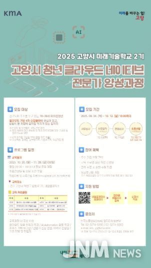 한편고양시는 오는 10월부터 '미래기술학교 2기 – 고양시 청년 클라우드 네이티브 전문가 양성과정'을 운영할 예정으로, 9월 4일부터 10월 12일까지 잡아바 어플라이를 통하여 교육생을 모집한다.