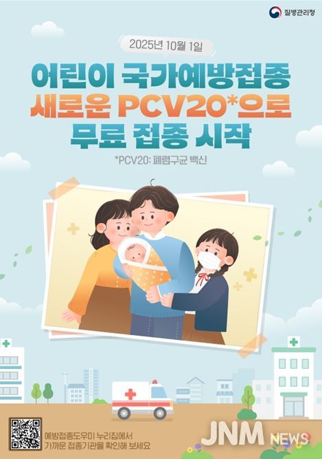 제이앤엠뉴스 | 질병관리청은 10월 1일부터 폐렴구균 국가예방접종에 신규 백신인 20가 단백결합백신(PCV20)을 도입해 접종을 시작한다.