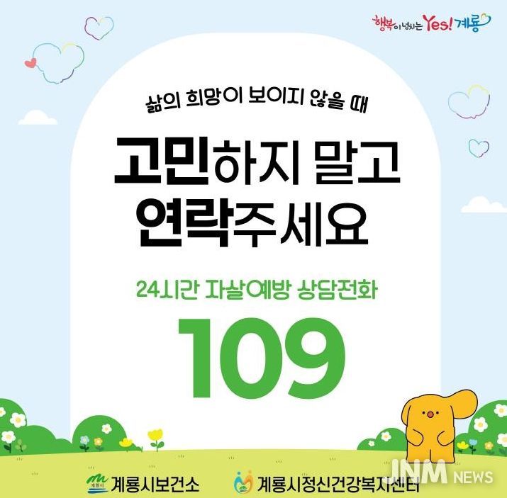 제이앤엠뉴스 | 계룡시는 ‘행복이 넘치는 Yes! 계룡’ 구현을 위해 건강하고 행복한 계룡시를 위한 다양한 자살 예방 사업을 펼치고 있다.