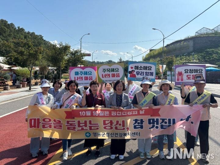 이번 캠페인은 10월 10일 정신건강의 날을 맞이하여 자살 예방에 대한 사회적 관심과 공감대를 확산하기 위해 마련됐으며, 영동군정신건강복지센터 직원 등 10여 명이 참여했다.