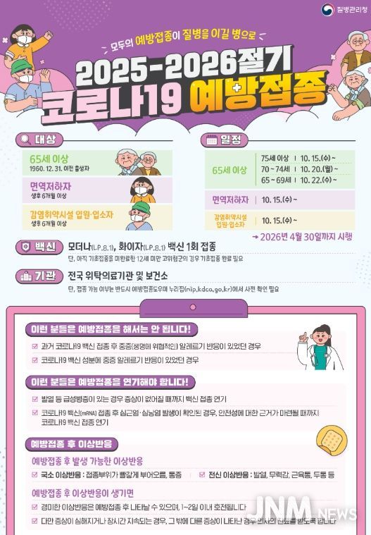 제이앤엠뉴스 | 양산시는 10월 15일부터 내년 4월 30일까지 ‘25-26절기’ 코로나19 예방접종을 실시한다고 밝혔다.