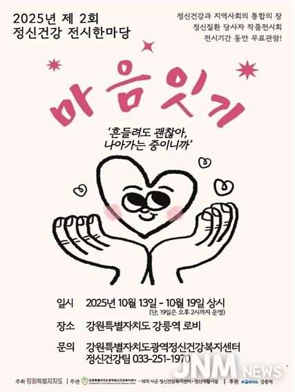 제이앤엠뉴스 | 강원특별자치도(도지사 김진태)와 강원특별자치도광역정신건강복지센터는 10월 13일 오전 11시, 강릉역 1층 로비에서 '제2회 정신건강 전시한마당' 개막식을 열고 전시의 시작을 알렸다.