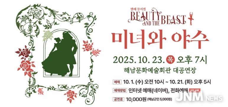 제이앤엠뉴스 | 해남군은 오는 10월 23일 오후 7시 해남문화예술회관 대공연장에서 발레뮤지컬 ‘미녀와 야수’공연을 선보인다.