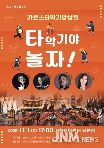제이앤엠뉴스 | (재)거창문화재단은 오는 11월 1일 토요일 오후 5시 거창문화센터 공연장에서 카로스 타악기 앙상블과 함께하는'타악기야 놀자!'를 개최한다.