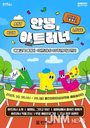 제이앤엠뉴스 | (재)용인문화재단은 예술교육 매개자 ‘아트러너(Art Runner)’ 사업 10주년을 맞아 오는 10월 15일부터 26일까지 용인어린이상상의숲 예술놀이터에서 기념 전시 '안녕, 아트러너'를 개최한다.