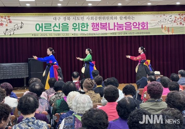 제이앤엠뉴스 | 구미시는 지난 14일 노인종합복지관 3층 대강당에서 구미노인대학 입학 어르신 220여 명을 모시고 행복나눔음악회를 개최했다.