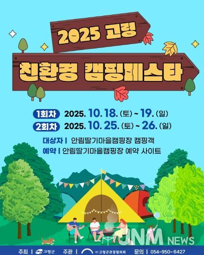제이앤엠뉴스 | 지역과 미래를 배려하는 친환경 캠핑 문화 확산을 위해 마련된 ‘2025 고령 캠핑 페스타’가 오는 10월 18일부터 19일, 10월 25일부터 26일 두 차례에 걸쳐 안림딸기마을캠핑장에서 열린다.