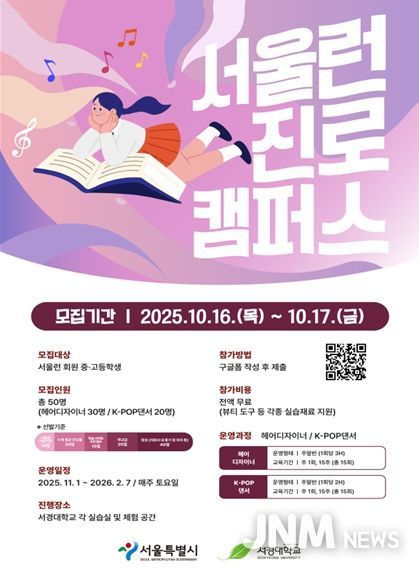 제이앤엠뉴스 | 서울시 대표 교육사다리 ‘서울런’이 청소년의 진로지원과 취업역량 강화까지 책임지는 종합 플랫폼 ‘서울런3.0’으로 도약하는 첫걸음으로 서경대학교와 협력해 예체능 진로 지원을 본격화한다. K-뷰티(헤어·메이크업·네일), K-POP 댄스, 한국어 교육 등 5개 과정을 시범 운영하며, 중·고등학생 서울런 회원 130명을 선발해 11월부터 진행한다.