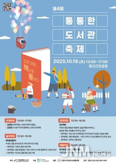 10월 18일 13시~17시에 열리는 ‘제4회 통통한 도서관 축제’에서는 ‘인천 여행, 책으로 통하다’라는 주제로 총 4개(무대마당, 놀이마당, 참여마당, 체험마당)의 행사를 진행한다.
