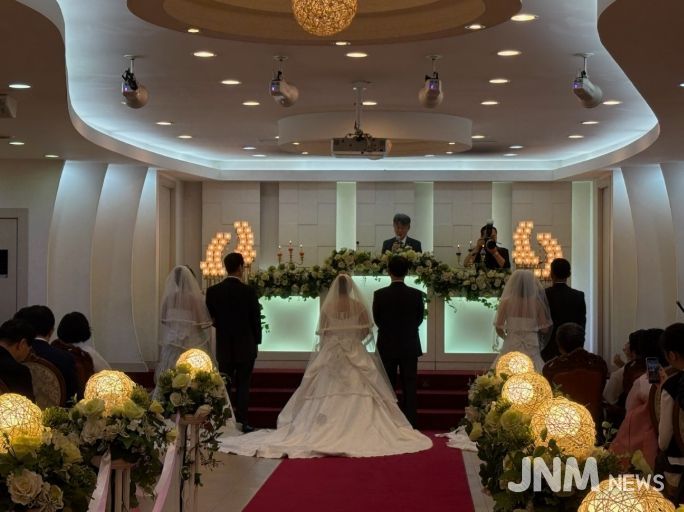 제이앤엠뉴스 | 농가주부모임옥천군연합회는 16일 옥천농협예식장에서 3쌍의 농촌 다문화가족을 대상으로 합동결혼식을 진행했다.