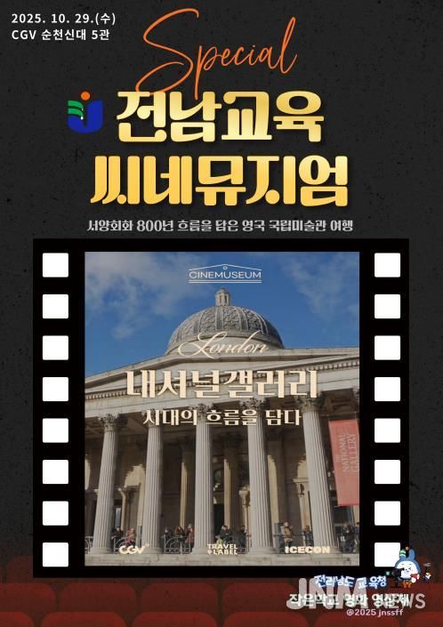 제이앤엠뉴스 | 전라남도교육청은 오는 29일 CGV순천신대 5관에서 ‘전남교육씨네뮤지엄: 아트가이드와 함께하는 유럽 미술관 투어’ 프로그램을 운영한다.