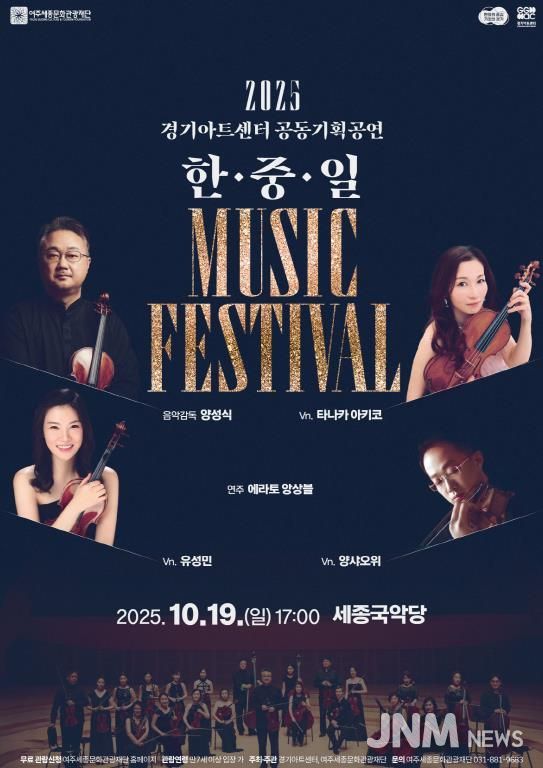 제이앤엠뉴스 | 여주세종문화관광재단이 오는 10월 19일, 경기아트센터와 공동기획으로 ‘한·중·일 뮤직 페스티벌’을 세종국악당에서 선보인다.