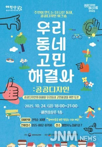 제이앤엠뉴스 | 밀양문화관광재단은 오는 24일 오후 6시 해천상상루에서 ‘우리 동네 고민 해결사, 공공디자인!’ 워크숍을 개최한다고 17일 밝혔다.