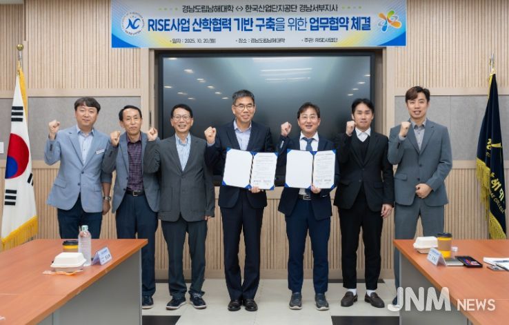 제이앤엠뉴스 | 경남도립남해대학(총장 노영식)은 20일 오후 2시 교내 혁신학습지원실에서 한국산업단지공단 경남서부지사와 ‘경남 지역혁신중심 대학지원체계(RISE) 사업’ 추진을 위한 업무협약을 체결했다고 밝혔다.