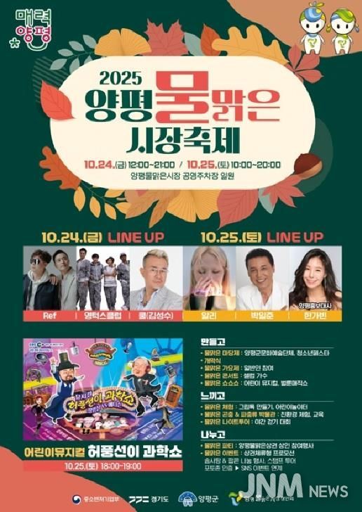 제이앤엠뉴스 | 양평물맑은시장의 대표 축제인 ‘2025 양평물맑은시장 축제’가 오는 10월 24일부터 25일까지 양평물맑은시장 공영주차장에서 열린다.