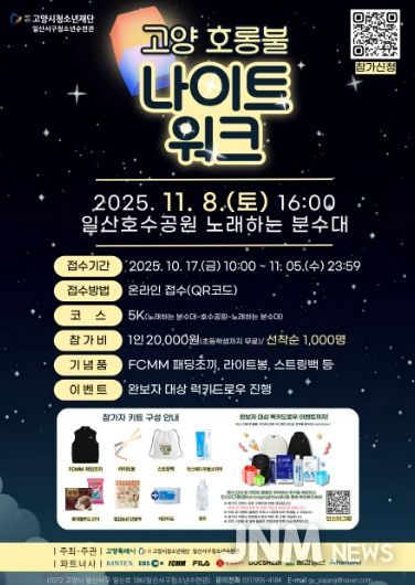 제이앤엠뉴스 | 고양시청소년재단 일산서구청소년수련관은 시민들이 함께 걷는 ‘2025 고양 호롱불 나이트워크’를 11월 8일 오후 4시, 일산호수공원 노래하는 분수대에서 개최한다고 밝혔다.