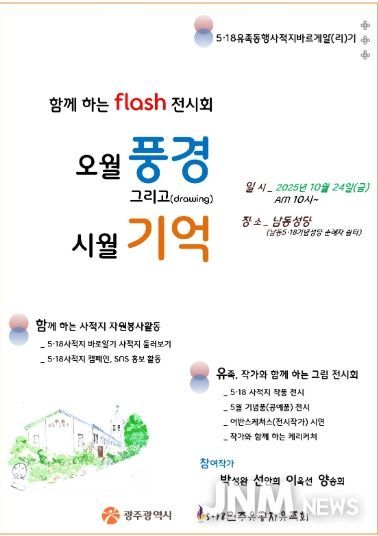 제이앤엠뉴스 | 광주광역시는 5·18민주유공자유족회와 함께 24일 동구 남동5·18기념성당에서 시민과 함께하는 ‘오월 풍경 그리고(drawing) 시월 기억’ 전시회를 개최한다.