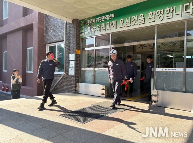 제이앤엠뉴스 | 청주시 하수처리과는 흥덕구 옥산면 청주하수처리장의 화재 예방과 대응능력을 강화하기 위해 23일 청주서부소방서 옥산119안전센터와 합동으로 소방훈련을 실시했다.