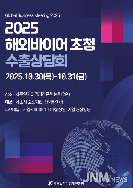 제이앤엠뉴스 | 세종일자리경제진흥원은 오는 30일부터 31일까지 이틀간 진흥원 본원에서 ‘2025 해외바이어 초청 수출상담회’를 개최한다고 밝혔다.