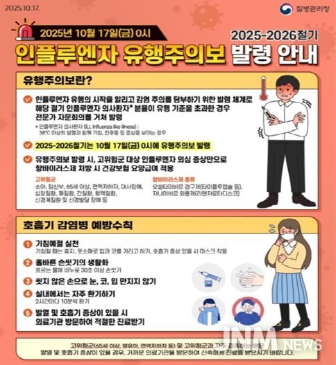 유행주의보 기간에는 어린이, 임신부, 65세 이상 어르신, 면역 저하자 등 고위험군이 독감 의심 증상만 있어도 항바이러스제 처방 시 요양급여를 받을 수 있다. 따라서 의심 증상이 있을 경우 가까운 병의원에서 신속히 진료를 받아야 한다.