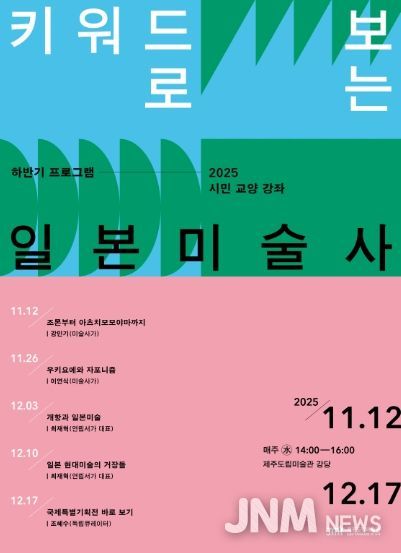 제주도립미술관은 11월 12일부터 12월 17일까지 수요일 오후 2~4시 미술관 강당에서 ‘2025 시민 교양 강좌’ 하반기 프로그램 '키워드로 보는 일본미술사'를 운영한다.