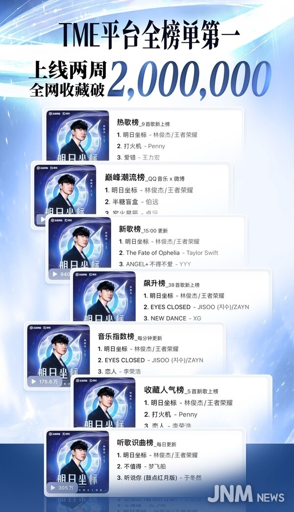 제이앤엠뉴스 | 선전, 중국 2025년 10월 29일 -- 글로벌 인기 게임 '아너 오브 킹즈(Honor of Kings)'의 10주년 기념 테마곡 '아틀라스 오브 투모로우(Atlas of Tomorrow)'가 공개됐다. 이 곡은 텐센트 뮤직 엔터테인먼트(TME)의 QQ 뮤직(QQ Music), 쿠구(Kugou), 쿠오(Kuwo)를 비롯해 애플 뮤직(Apple Music), 스포티파이(Spotify), KKBOX 등 주요 글로벌 플랫폼에서 스트리밍 중이다. '아틀라스 오브 투모로우'는 발매 직후 다수의 차트 1위를 석권하며 만도팝(Mandopop)과 글로벌 게임 IP가 만난 최신 블록버스터 크로스오버로 주목받고 있다.