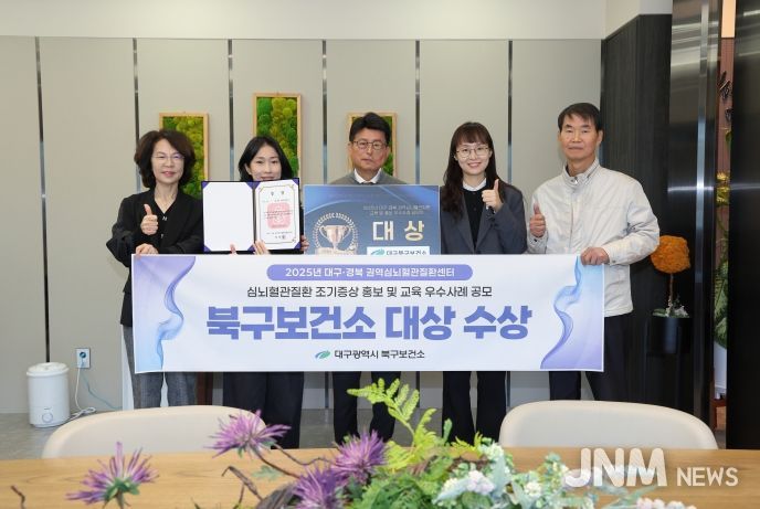 제이앤엠뉴스 | 대구북구보건소가 대구·경북 권역심뇌혈관질환센터가 주관한 '2025년 심뇌혈관질환 조기증상 홍보 및 교육 우수사례 공모전'에서 대상(대구·경북 1위)을 수상했다.