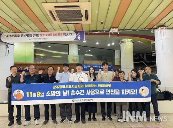 제이앤엠뉴스 | 광주도시공사는 지난 7일 ‘소방의 날’을 맞아, 공사가 관리·운영 중인 충금 지하도상가 일원에서 화재 예방 캠페인을 실시했다.