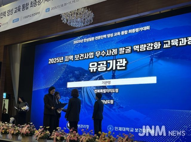 제이앤엠뉴스 | 전북특별자치도가 19일 전남 여수 디오션리조트에서 개최된 질병관리청 주관 '2025년 만성질환 전문인력 양성 교육 통합 최종평가대회'에서 만성질환 전문인력 양성 교육 우수 시도로 선정됐다고 밝혔다.