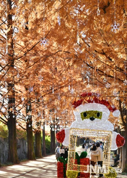 제이앤엠뉴스 | 담양군 메타세쿼이아 가로수길이 가을 풍경의 절정을 보여주고 있다.