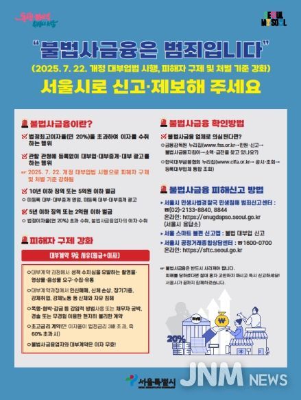한편 서울시는 불법 대부 행위에 대한 자영업자들의 각별한 유의와 함께 의심 사례는 적극적으로 신고 또는 제보해 줄 것을 당부했다.