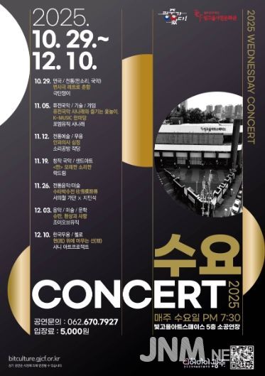 제이앤엠뉴스 | 광주문화재단은 오는 12월 3일과 12월 10일 수요일 저녁 7시 30분, 빛고을아트스페이스 5층 소공연장에서 12월의 ‘수요콘서트’를 개최한다고 밝혔다.