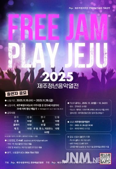 제이앤엠뉴스 | 제주특별자치도 문화예술진흥원은 제주 청년 예술인의 음악적 역량 강화와 공연 경험 확대를 위해 추진하는 ‘2025 제주청년음악열전’ 참여 희망자 60명을 오는 28일 오후 6시까지 공개 모집한다.