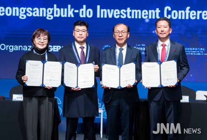 제이앤엠뉴스 | 구미시는 11월 27일 그랜드 인터컨티넨탈 서울 파르나스에서 ㈜코람코자산운용 김태원 대표, ㈜호암글로벌 이우호 대표를 비롯하여 이철우 경상북도지사, 김장호 구미시장이 참석한 가운데 구미 산단 내 브랜드호텔 건립과 운영을 위한 4자 간 투자양해각서(MOU) 체결식을 개최했다.