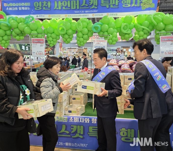 제이앤엠뉴스 | 영천시는 28일부터 30일까지 3일간 하나로마트 농협 울산유통센터에서 샤인머스캣 판매 행사를 단독으로 진행한다고 전했다.