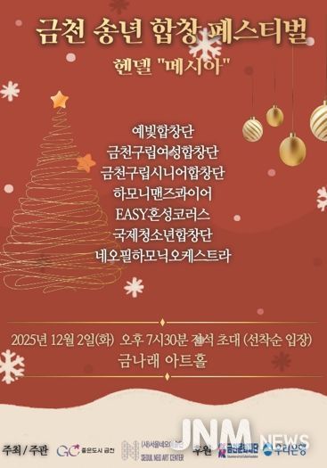 제이앤엠뉴스 | 금천구는 12월 2일 오후 7시30분 금나래아트홀 대공연장에서 ‘2025 송년 합창 페스티벌’을 개최한다고 밝혔다.