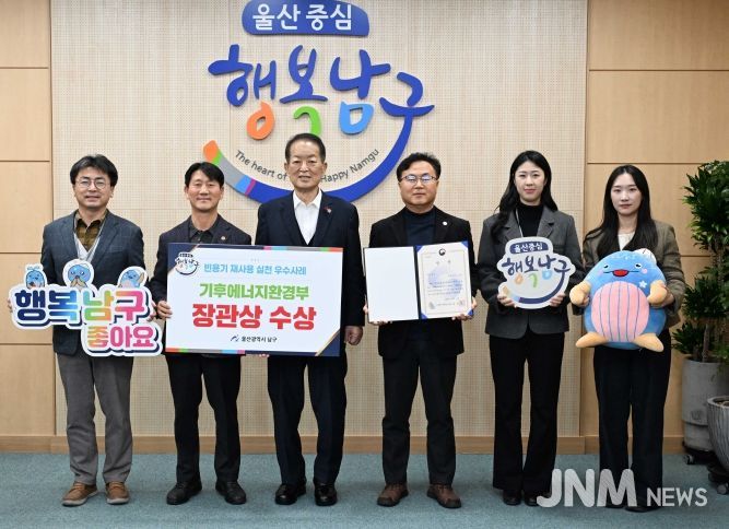 제이앤엠뉴스 | 울산 남구는 기후에너지환경부가 주최하고 자원순환보증금관리센터(이사장 박용규)가 주관한 '2025년 빈용기 재사용 실천 우수사례' 공모에서 ‘최우수상(기후에너지환경부 장관상)’을 수상했다고 19일 밝혔다.