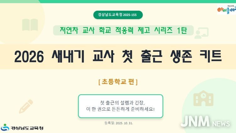 제이앤엠뉴스 | 경상남도교육청은 22일부터 도내 초등학교 신규 교사의 안정적인 학교 정착을 지원하기 위한 『2026 새내기 교사 첫 출근 생존 키트』를 도내 전 초등학교에 배포한다.