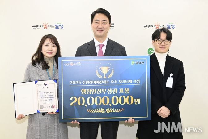 제이앤엠뉴스 | 달성군은 행정안전부가 주관한 ‘2025년 주민참여예산제 성과평가’에서 우수 지자체로 선정되어 행정안전부장관 표창을 수상하며, 특별교부세 2천만 원을 확보했다고 밝혔다.