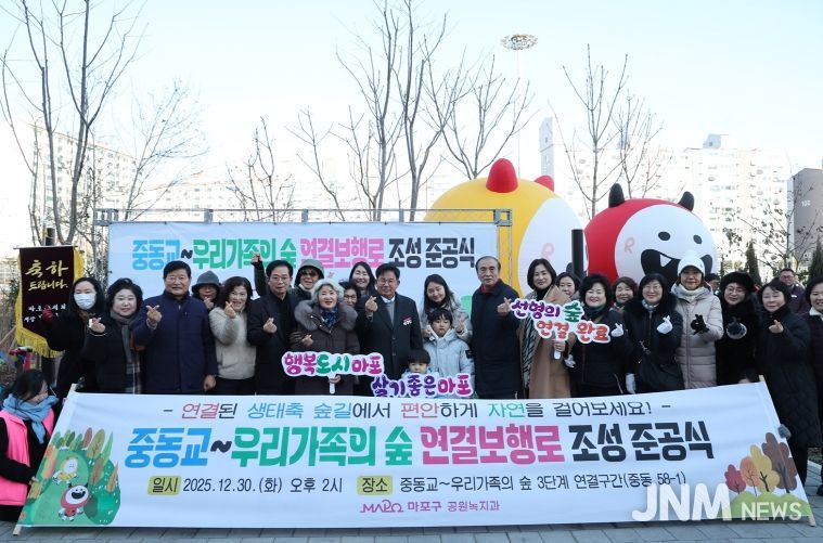 제이앤엠뉴스 | 박강수 마포구청장은 12월 30일 오후 2시, 중동교와 우리가족의 숲(구 선형의 숲) 3단계를 잇는 구간에서 열린 ‘중동교~우리가족의 숲 연결보행로 조성사업 준공식’에 참석했다.