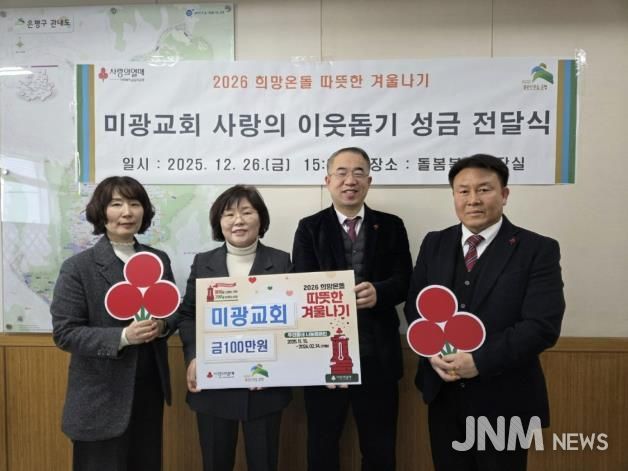 제이앤엠뉴스 | 서울 은평구는 지난달 26일 미광교회와 2026 희망온돌 따뜻한 겨울나기 사랑의 이웃돕기 성금 전달식을 가졌다고 밝혔다.