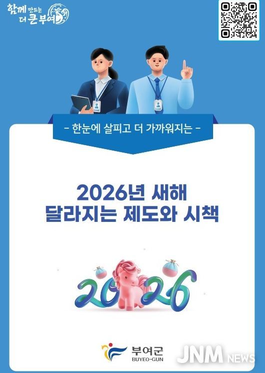 제이앤엠뉴스 | 부여군은 ‘2026년 달라지는 제도·시책’을 군 누리집에 게시했다고 2일 밝혔다.