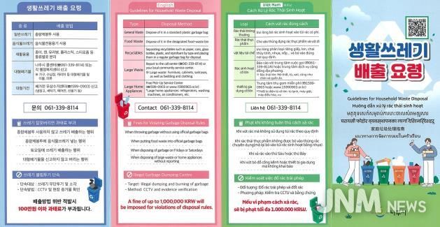 제이앤엠뉴스 | 외국인 거주자와 근로자가 생활폐기물 배출 방법을 쉽게 이해하고 올바르게 실천할 수 있도록 나주시가 다국어 홍보물을 제작해 무단투기 예방과 쾌적한 도시환경 조성에 나선다.