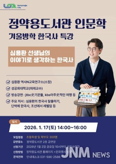제이앤엠뉴스 | 남양주시는 오는 17일 오후 2시 정약용도서관 2층 공연장에서 겨울방학 인문학 특강 ‘이야기로 생각하는 한국사’를 개최한다.