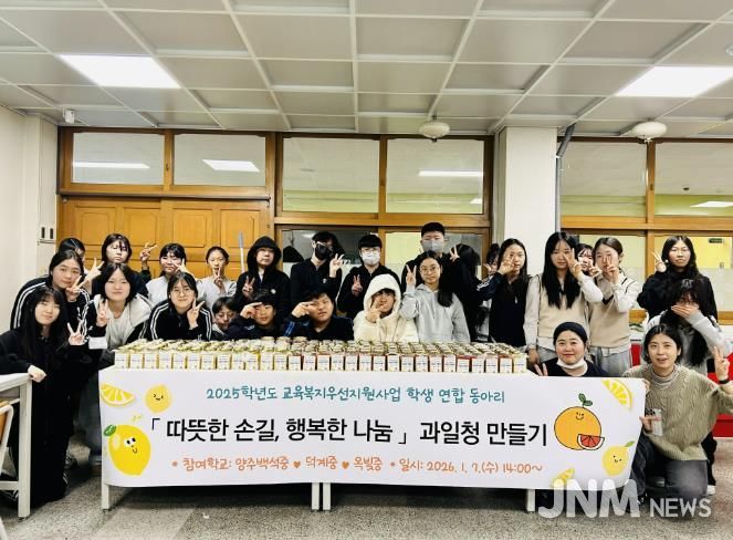 제이앤엠뉴스 | 양주 관내 중학교 3개교(양주백석중학교·덕계중학교·옥빛중학교)는 1월 7일, 교육복지 학생 동아리 연합 나눔 프로그램" 따뜻한 손길, 함께 나누는 행복"을 공동으로 운영했다.