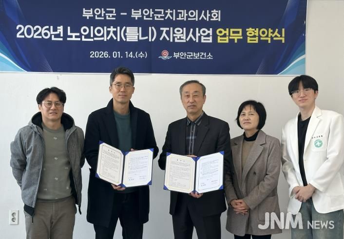제이앤엠뉴스 | 부안군보건소는 14일 노인의치(틀니) 사업의 원활한 추진을 위해 부안군치과의사회와 업무 협약을 체결했다고 밝혔다.