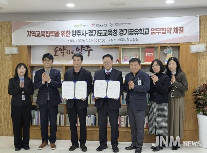 제이앤엠뉴스 | 동두천양주교육지원청과 양주시청은 1월 21일, '지역교육협력을 위한 양주시-경기도교육청 경기공유학교 업무 협약'을 체결했다.