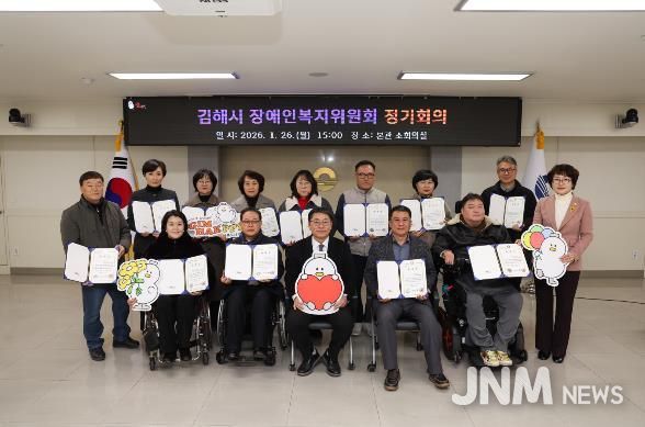 제이앤엠뉴스 | 김해시는 지난 26일 시청 소회의실에서 '2026년 김해시 장애인복지위원회' 정기회의를 열고, 올해 추진할 주요 복지 정책의 방향성을 정립하고 현장의 목소리를 수렴하는 시간을 가졌다. 이번 회의에는 위원 14명이 참석하여 장애인 권익 증진을 위한 심도 있는 논의를 진행했다.