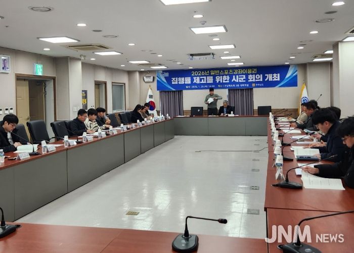제이앤엠뉴스 | 전라남도는 29일 전남도체육회 대회의실에서 도, 시군, 체육 관계자 등이 참석한 가운데 2026 일반스포츠강좌이용권 시군 담당 회의를 개최, 사업의 효율적 추진과 집행률 제고를 위한 다양한 방안을 논의했다.