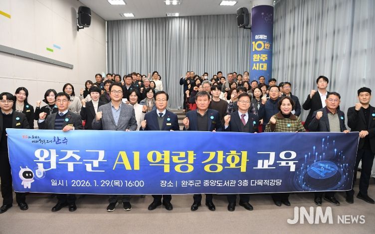제이앤엠뉴스 | 완주군이 정부의 ‘인공지능(AI) 3대 강국 도약’ 정책과 연계해 인공지능 시대에 선제적으로 대응하기 위한 에이아이(AI) 역량 강화 교육을 1월 20일, 29일, 30일에 걸쳐 성공적으로 마쳤다.